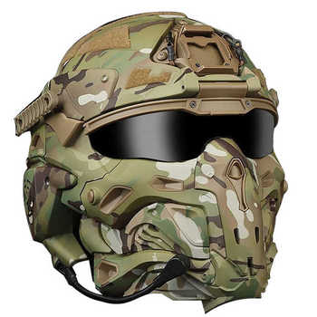 خوذة قناع كامل تكتيكية الكل في واحد مع سماعة رأس مدمجة ونظارات واقية من النايلون ABS معدات السلامة